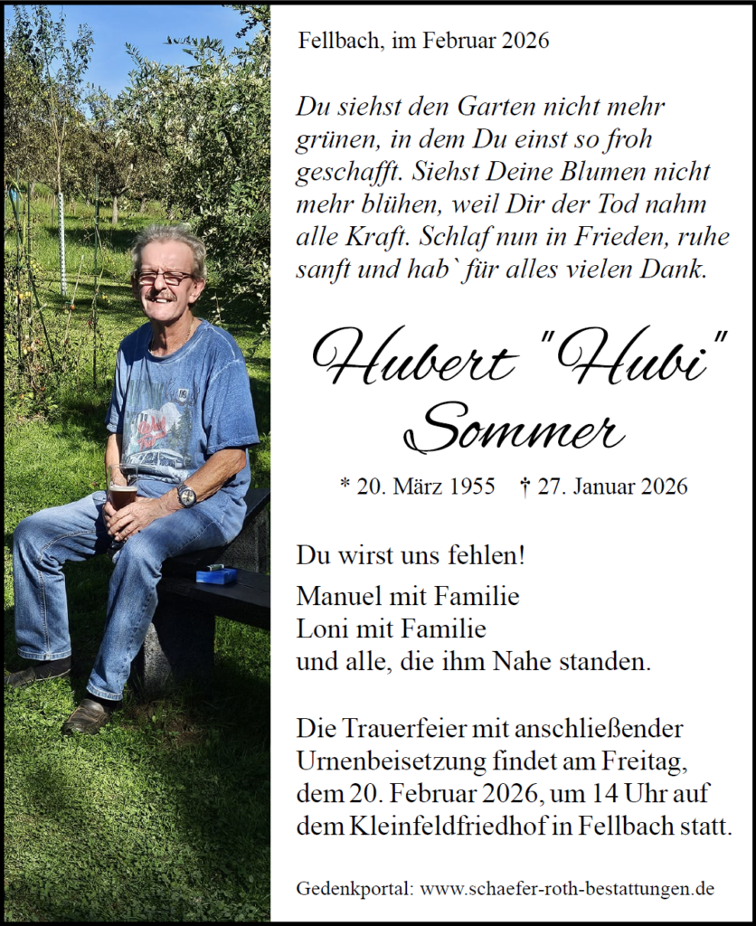 Traueranzeige Hubert 'Hubi' Sommer